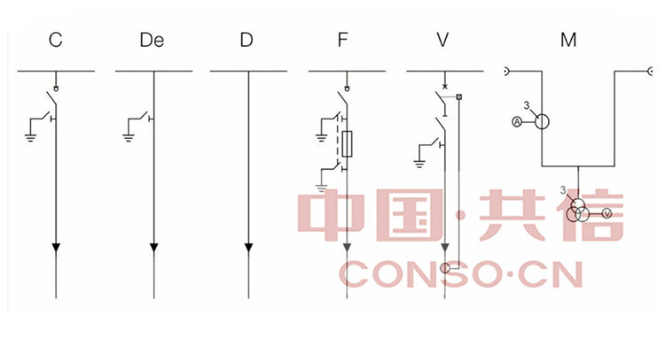 In actual cases, C and V unit offers the control and protection to inputting and outputting cable power line. Besides the function of load operation, the V unit has more function on cutting off short circuit current and load current. The M unit equips metering CT, and PT, and energy meter. Normally, it has 800mm width which is same as a KYN28-12 . D and De unit is used for raising the cable height from the ground to the top of the sf6 ring main unit. In addition, the F unit also used in inputting and outputting protection, but terminal users prefer to adopts V unit instead of F unit, since the controlling gear is more complex.